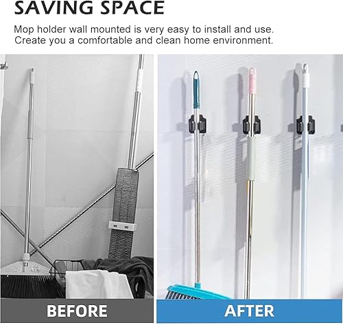 4 Pièces Accroche Balai Mural Sans Percer, Noire en Acier Inoxydable Support Balais Mural, avec 8 Pcs de Vis et 4 Pcs de Colle Sans Trace Dans le Paquet, pour Buanderie Jardin, Organisation du Garage
