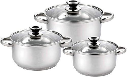 Haussmann Héritage® - 6 pièces Marmite Faitout acier inoxyable avec couvercles en verre - tous feux dont induction - HM-0613