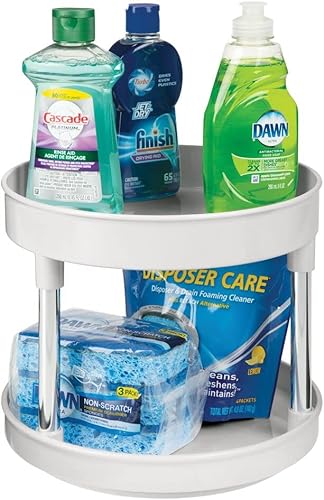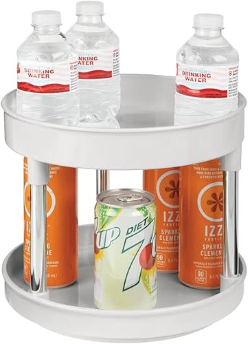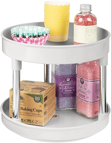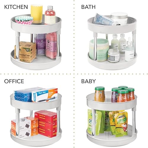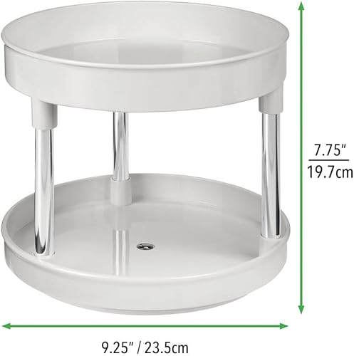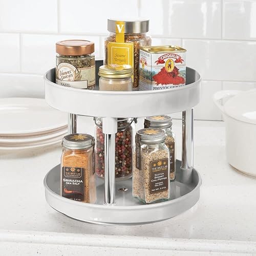 mDesign Lazy Susan plateau tournant en plastique à 2 étages pour épices, etc. (lot de 2) – accessoire de rangement cuisine pour placards et plan de travail – étagère à épices – gris clair/argenté