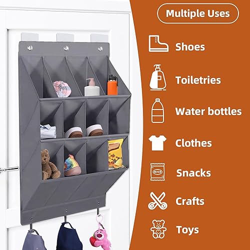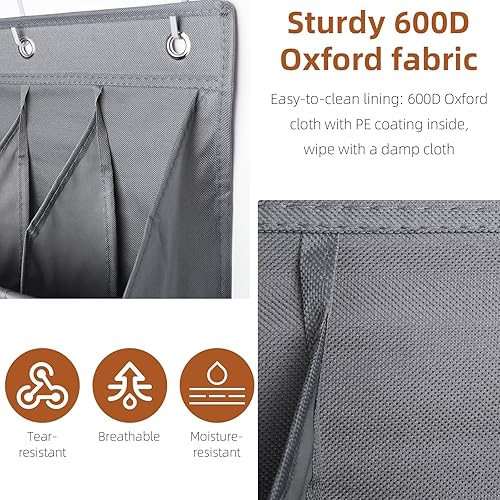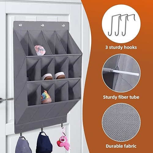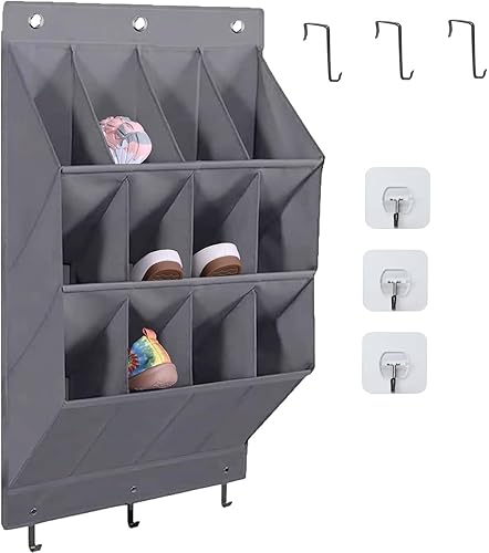 LJEC Rangement Chaussures Suspendu Avec 12 Poches Profondes Et 6 Crochets, Porte Chaussures Mural, Organiseur, Noir Tissu En Lin,Rangement Camping Car Pour Chaussures, Accessoires De Maison,Gris
