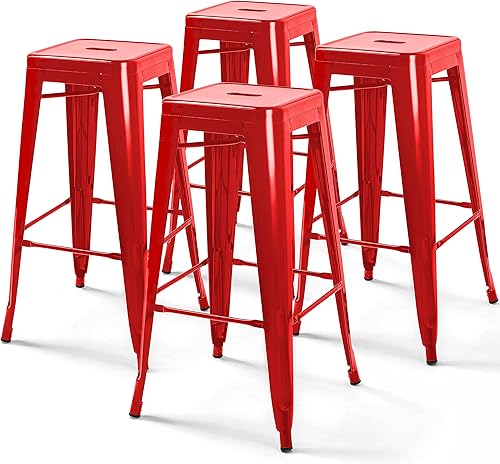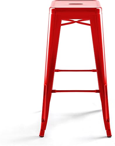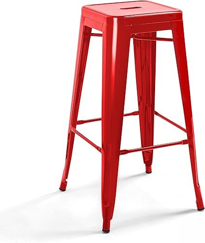 Oviala Lot de 4 tabourets de Bar en Acier Rouge Brillant