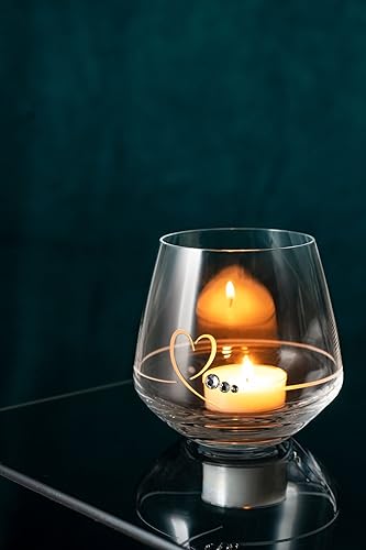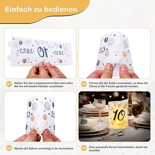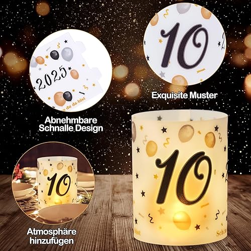 Lot de 12 photophores décoratifs de table pour 10e anniversaire, Seutgjie 10e anniversaire, mariage, noces de rose pour fille et garçon 2015-2025 noir doré pour bougies chauffe-plat ou bougies