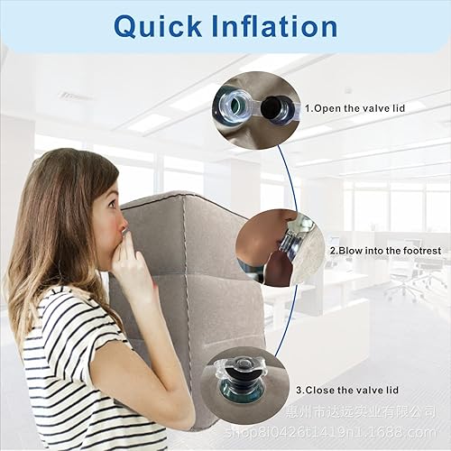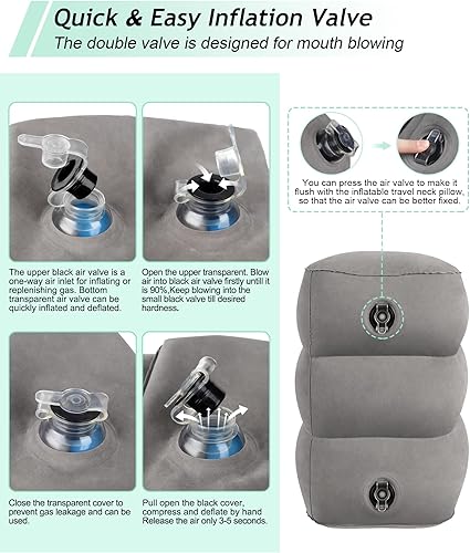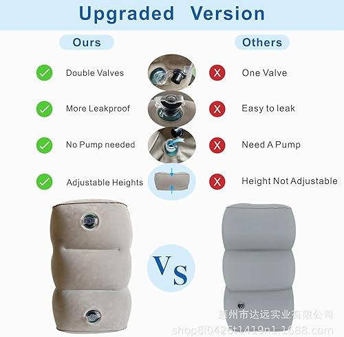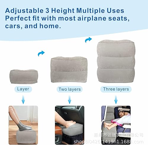 Oreiller de Repose-Pieds Gonflable pour Le Voyage, Coussin de Repose-Pied Réglable en Hauteur pour Avion, Repose Pieds Gonflable 3 Couches, Repos et Hauteur Ajustable Gonflable