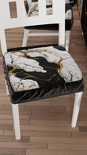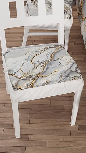 PETTI Artigiani Italiani - Lot de 2 Coussins de chaises de Cuisine, Effet marbre Gris Clair, 40 x 40 cm, Housses de chaises carrées avec élastique pour Salle à Manger en Microfibre, 100% fabriqué en