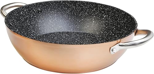 WECOOK! Professional Casserole basse induction 28 cm, antiadhésive écologique sans PFOA, aluminium forgé, couleur cuivre, 2,8 mm, poignées en acier inoxydable, vitrocéramique, gaz, four