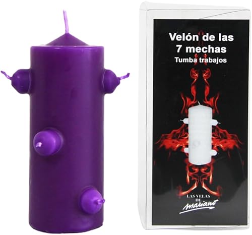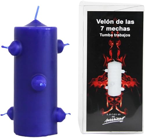 VELAS MARIANO Voile noire à 7 mèches, 16 cm de haut x 5,5 cm de large, pour rituels de nettoyage (bleu)