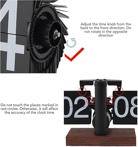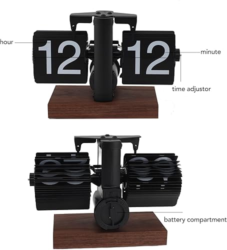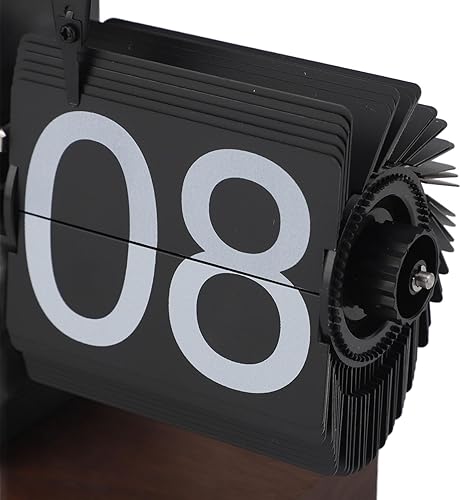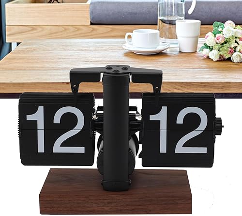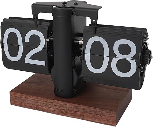 Horloge de Table Numérique à Bascule, Horloge à Bascule Rétro Créative 24 Heures avec Base en Noyer Noir, Horloge Mécanique à Bascule Automatique, Grand Nombre de Cartes