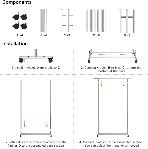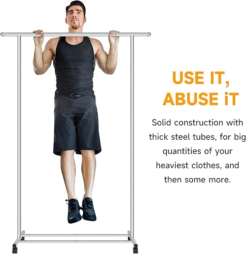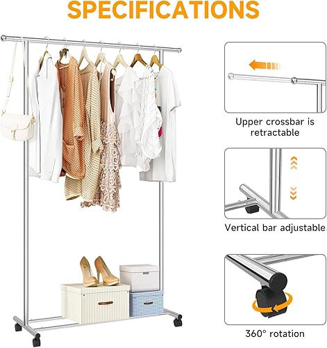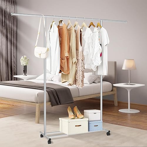 SAN LIKE Portant à Vêtements, Tringle à vêtements sur roulettes en métal avec roulettes - Solide - Avec tringle à vêtements extensible - Pour chambre à coucher