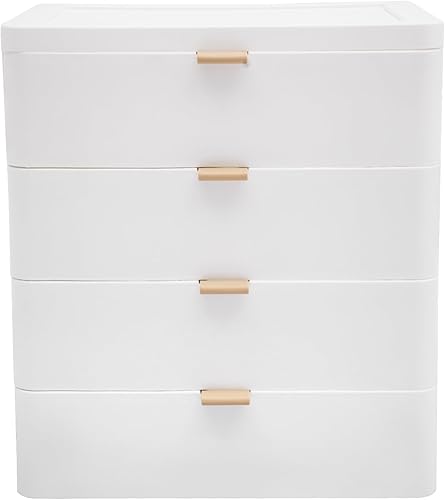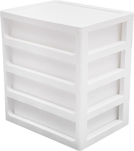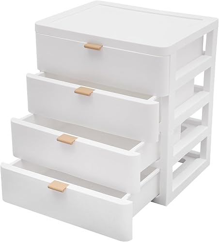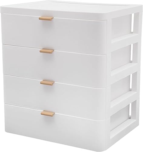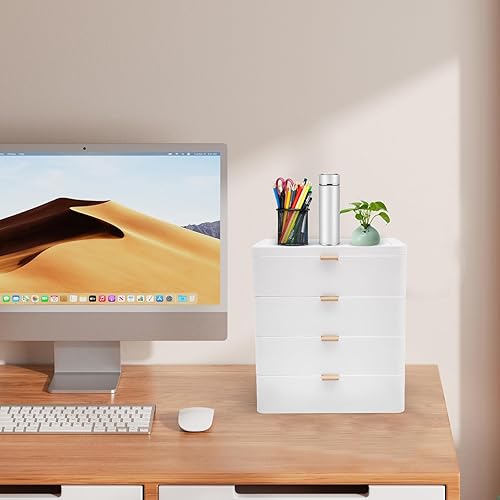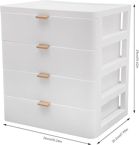 Tour de rangement à 4 tiroirs - Blanc - 26 x 20,2 x 29 cm - Grande capacité - Tiroir simple et transparent pour bureau à l'école et à la maison