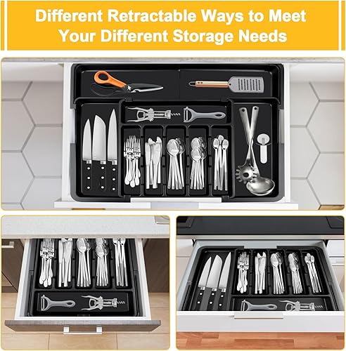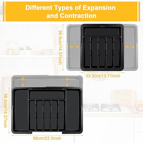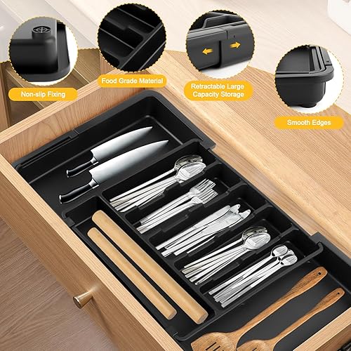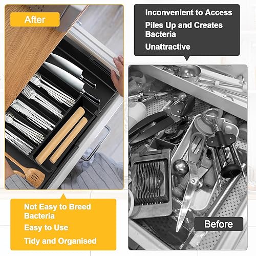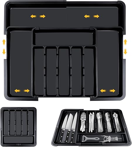 TNOMSNO Range Couverts pour Tiroi, Range Couverts Grand Plateau de Couverts Extensible pour la Cuisine, Plateau d'Ustensiles Extensible pour Tiroir pour Couverts, Cuillères, Fourchettes