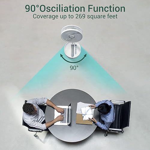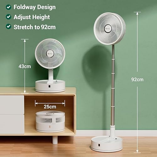 Marchpower Ventilateur Silencieux Portable Réglable Pliable Ventilateur sur Pied Télécommande 5 Vitesses Ventilateur de Table 7200mAh Batterie Rechargeable avec Sac Ø10''/25CM