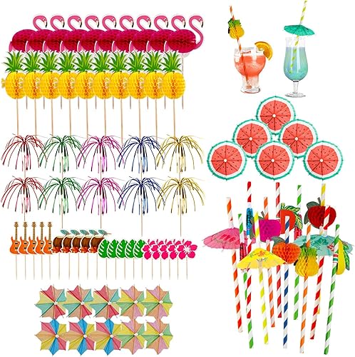 DAOOZHU 90Pcs Décorations de Cocktail,Parapluie Cocktail,Agitateur Cocktail pour Présentation de Boissons Tropicales Décorations de Fêtes