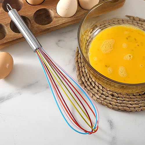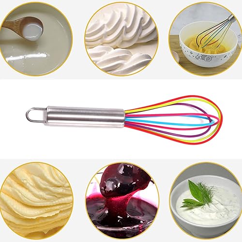 Syfunlv Fouet Patisserie, Fouets en Silicone, Fouets Cuisine, Fouet Cuisine Silicone avec PoignéE en Acier Inoxydable, pour MéLanger, Fouetter, Batter, Faire Mousser Et Remuer. (21cm)