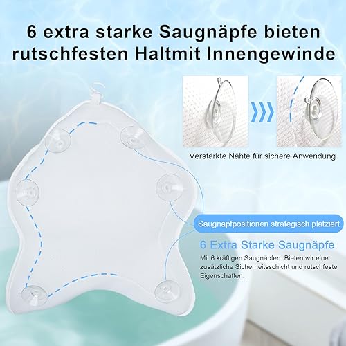 Poemland Grand coussin de bain extra épais avec nuque, dos et tête pour baignoire, spa, immersion (gris, extra large)