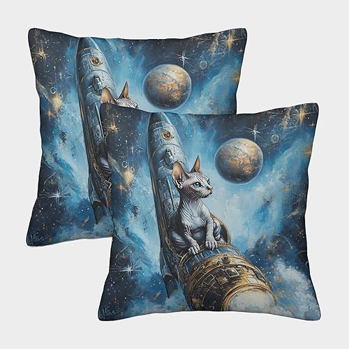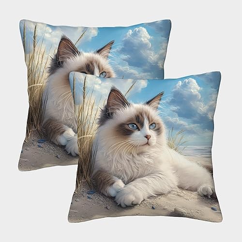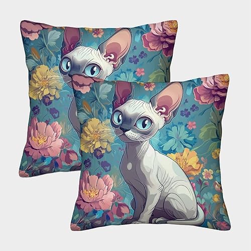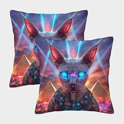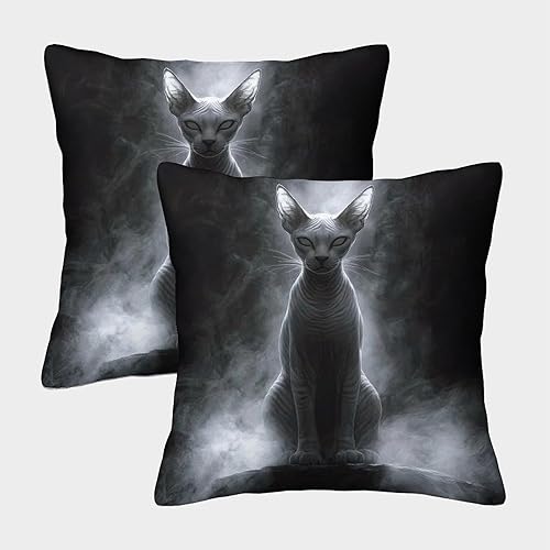 FELASBUID Sphinx Chat Housse Coussin Lot De 2 Animaux Canapé Taie d'oreiller DecoSourisif Taies d'oreiller Salon pour Chambre Famille 40x40cm