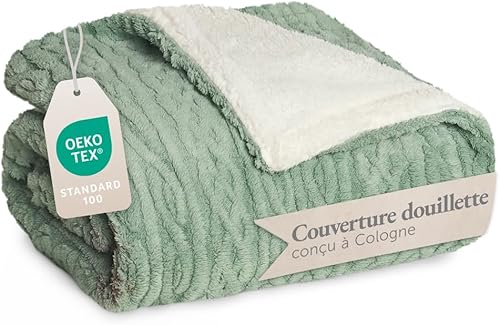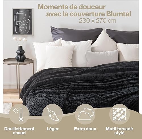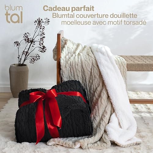 Blumtal Couverture Chaude 230x270 cm avec Motif torsadé - Couverture Polaire certifiée Oeko-TEX + intérieur Sherpa Doux - couvertures et Plaids - Plaid XXL - couvertures, Plaids et boutis Bleu-Ivory