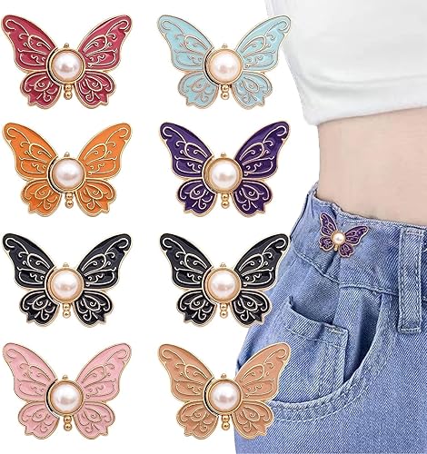 Lot De 8 Pince Pour Pantalon Trop Large, Serre Taille Pantalon De Papillon, Cute Bouton Jean Clipsable, Sans Couture Rendre Vêtement Plus Petits