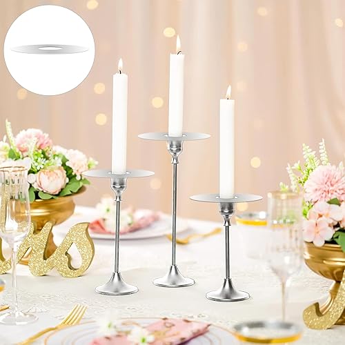 Ovaletta Lot de 12 bougies en argent - Anti-gouttes pour bougies - Protection anti-gouttes pour bougeoirs à tige - Bougies décoratives pour communion - Pour mariage, salon, bougeoir (22 x 70 mm)