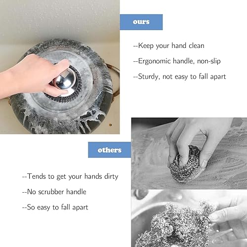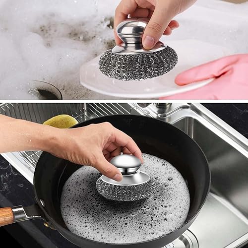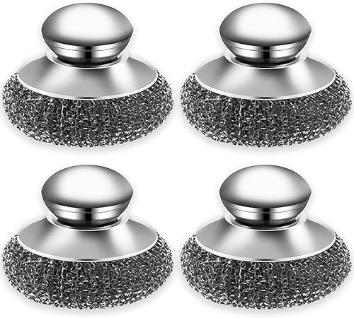 MisFun 4 Pieces Eponge Metallique, Cier Inoxydable Eponges Vaisselles, Éponge Vaisselle Réutilisable, Eponges à Récurer en Acier Inoxydable, Éponges À Récurer avec Poignée pour Nettoyer La Vaisselle