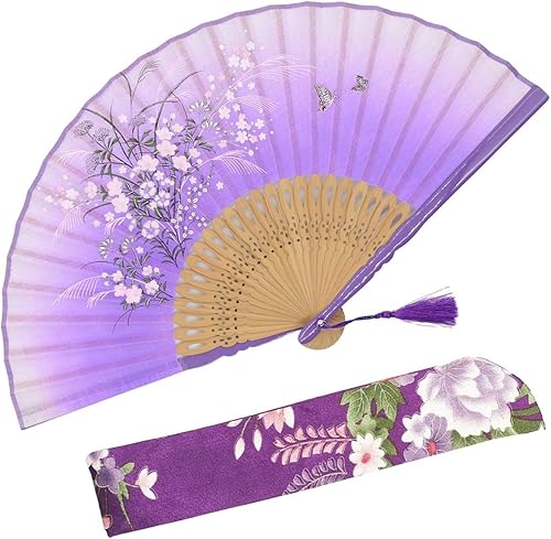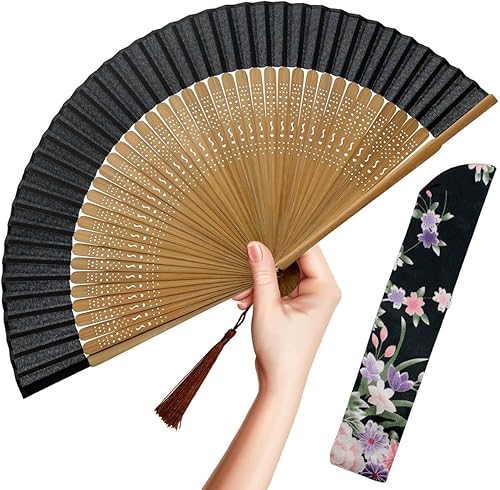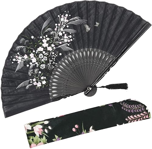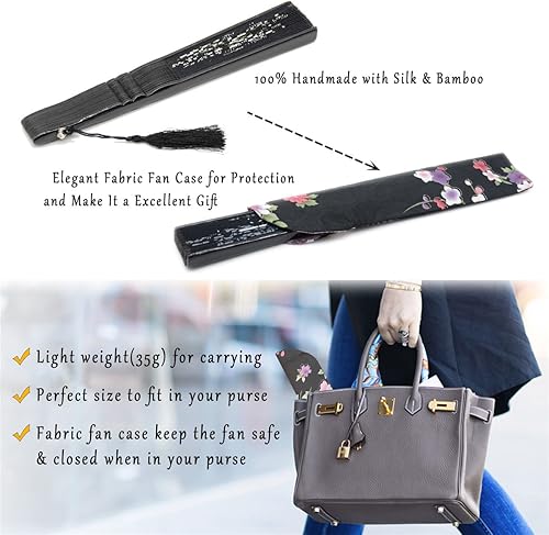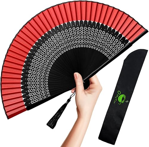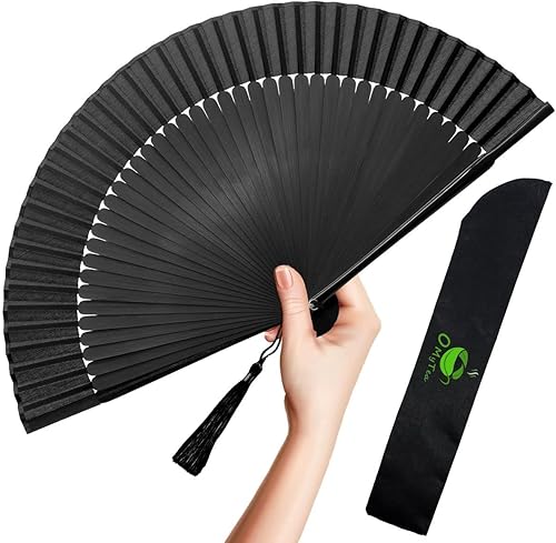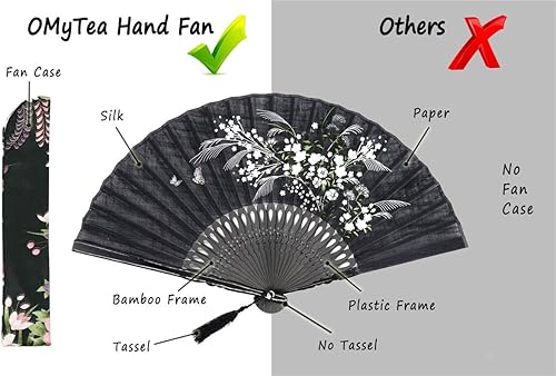 OMyTea Éventail pliable pour femme,Éventail pliable chinois japonais vintage en soie de bambou,pour flash chaud, église, décoration, EDM, festival de musique, danse, spectacle, cadeau (bambou sexy)