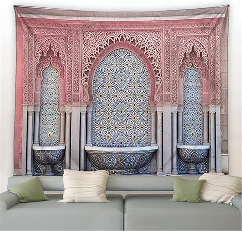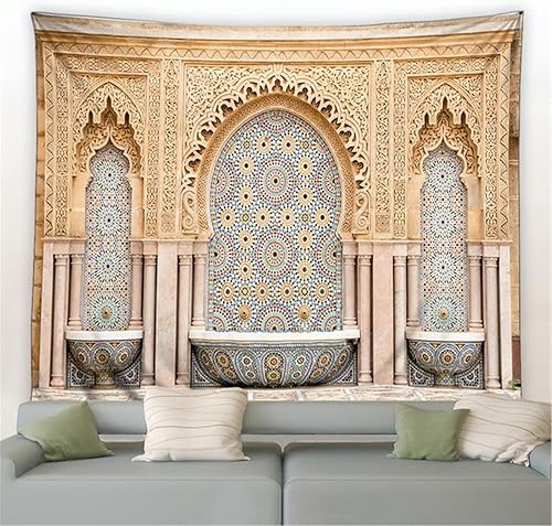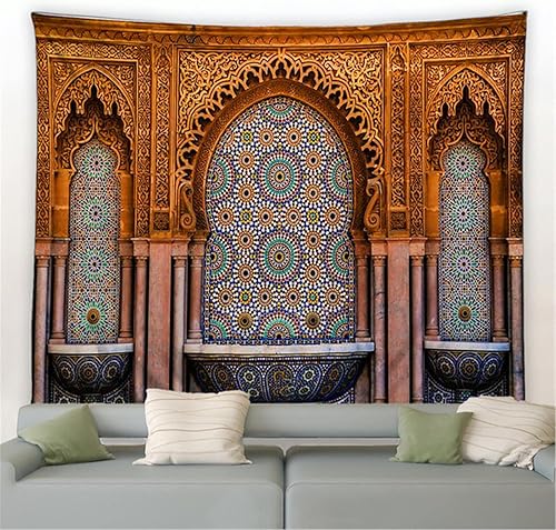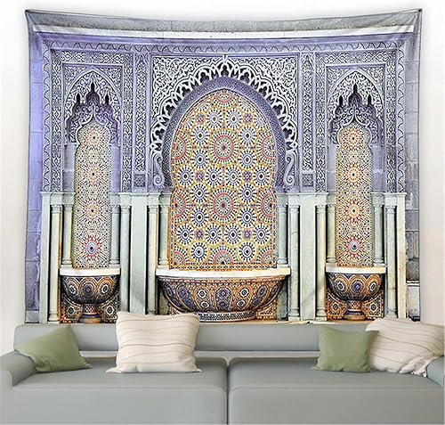 Maroc Tapisserie Motif Coloré Décor Architectural Rétro Boho Ethnique Mode Impression Moderne Maison Chambre Murale Tenture Murale Tissu 230X180cm