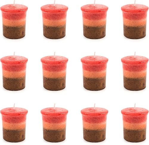 pajoma® Lot de 12 bougies votives parfumées 55 g, cannelle orange | Bougie votive en marbre | Durée de combustion : environ 17 heures - Hauteur : 5 cm - Diamètre : 4 cm - Qualité supérieure