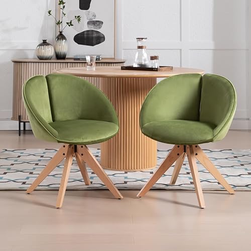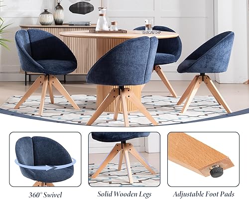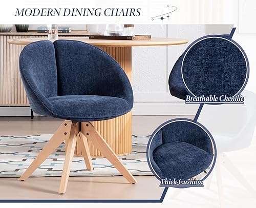 chairus Lot de 2 Chaise Pivotante Salle à Manger en Chenille, Chaises de Cuisine avec Pieds en Bois, Fauteuil Pivotante à 360°pour Salon, Gris