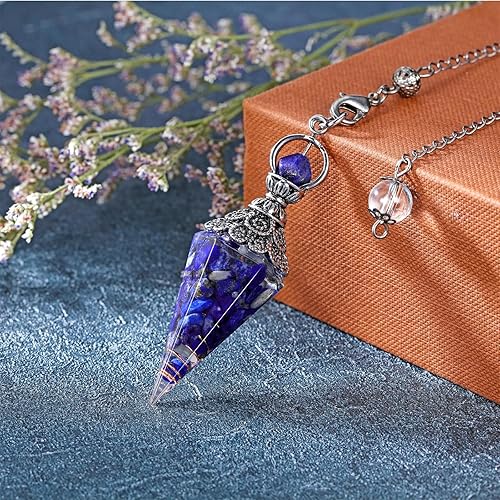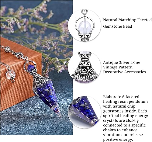 NATOSU Pendule en Cristal Lapis-Lazuli, Cristal de guérison, Pendule à Quartz, Spirituel, Hexagonal, cône Pointu, Pendentif en résine, Accessoires d'équilibrage d'énergie pour Sorcellerie