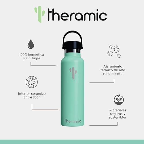 Theramic Bouteille d'eau thermique à double paroi avec revêtement interne en céramique de 600 ml Vert