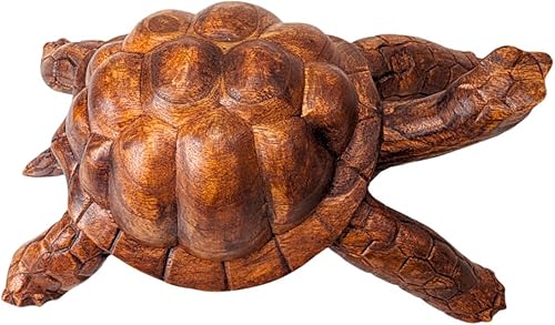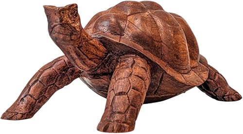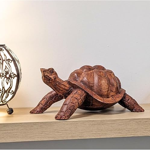 Artisanal Grande Statue Tortue de Terre 30cm en Bois Massif sculpté Main