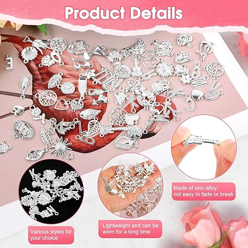RISF Lot de 126 pendentifs en métal - Pour bracelets - Breloques esthétiques - Pour bricolage de collier, bracelet, boucles d'oreilles, 1, Zinc, Alexandrite créé