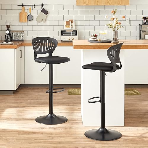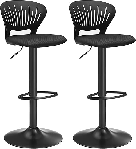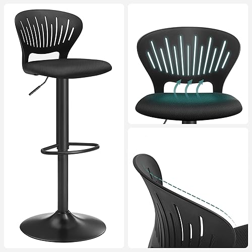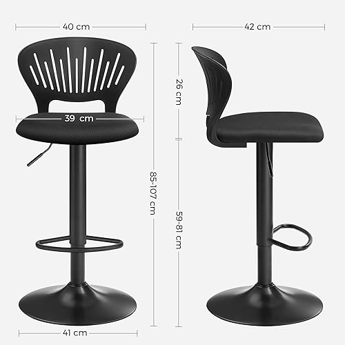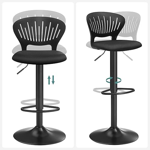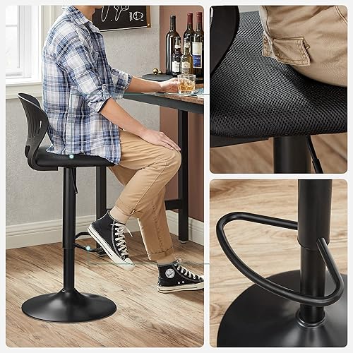 SONGMICS Tabouret Bar, Lot de 4, Chaise Bar, Chaise Haute Cuisine, Siège, Réglable en Hauteur, avec Dossier Incurvé, Assise Rembourrée, Repose-Pieds, Toile Respirant, Pivotant à 360°, Noir LJB04BK-4