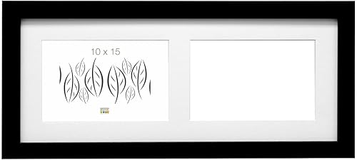 Deknudt Frames Cadre photo avec passe-partout pour 2 photos 10x15cm - Noir - Bois MDF - Multivue - Collage - pour accrocher ou poser - 18x39,5cm - S66KC2 10x15