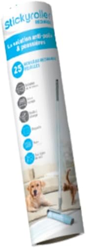 Recharges 50 Feuilles STICKYROLLER - VENTEO - Feuilles collantes pour Le Balai StickyRoller - Rouleau de Nettoyage de Papier Collant - Nettoyage Facile pour Voiture, lit, canapé - Tous Types de sols