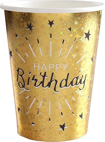 SANTEX 7214-3, Lot de 10 Gobelets HAPPY BIRTHDAY Etincelant métal Or