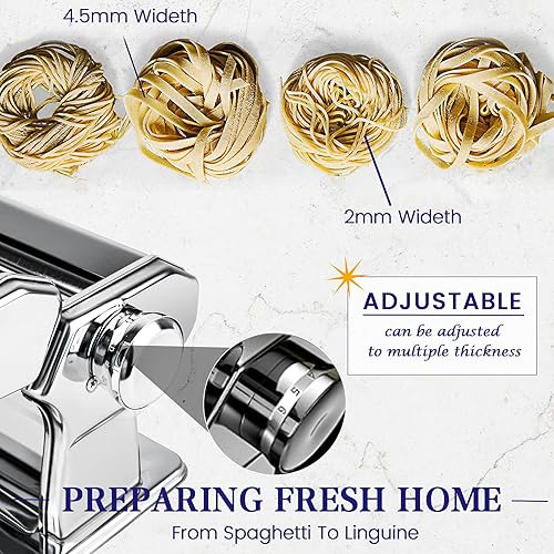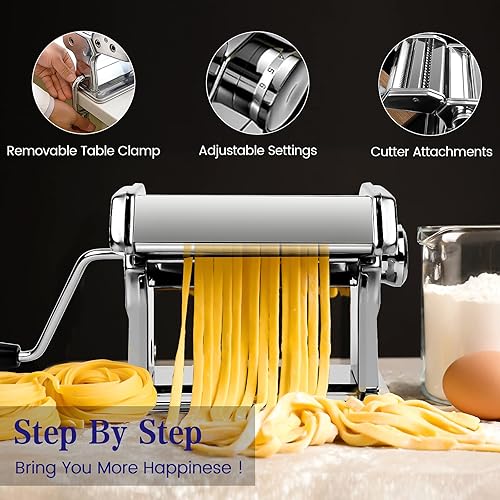 Machine à Pâtes,Fraîches Manuelle 7 échelles, 403 en Acier Inoxydable pour Tagliolini Fettucine Lasagnes Ravioles Spaghettis (7 Échelles)