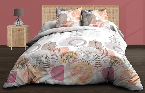 Le linge de Jules Parure Drap Plat + Drap-Housse 160x200 + 2 T - Pur Coton 57 Fils - Aquarel, Rose