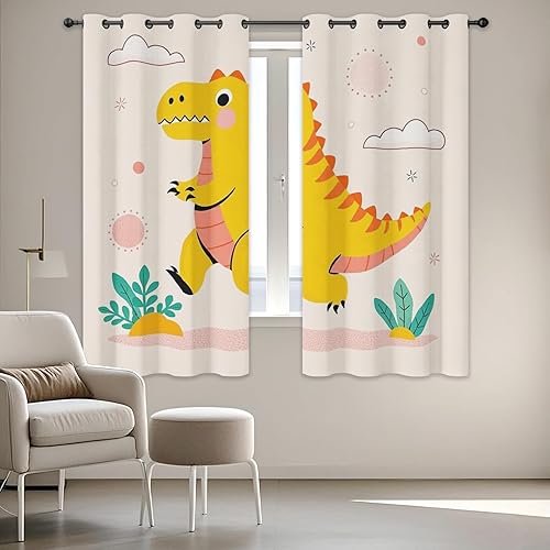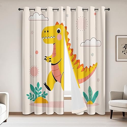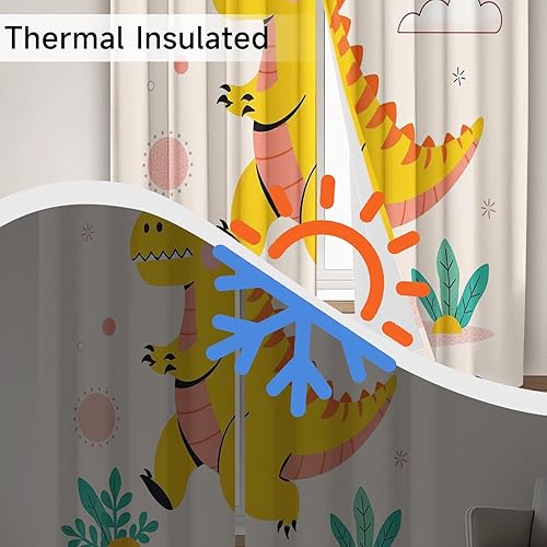 Qfpryzius Rideau Occultant Dinosaure Cartoon 140 x 260 cm - Lot De 2 Rideau Dinosaure, Rideaux Thermique Isolant Anti Froid à Oeillets pour Salon Chambre Décoration De Fenêtre