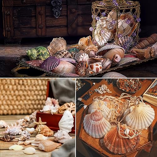 680g Coquillages Mixtes, 130+ Coquillages de Plage de DifféRentes Tailles éToiles de Mer Coquillages d'HuîTres Coquillages Marins Aquarium Poissons DIY Vase Remplissage Plage ThèMe FêTe Mariage Decor