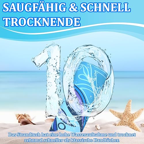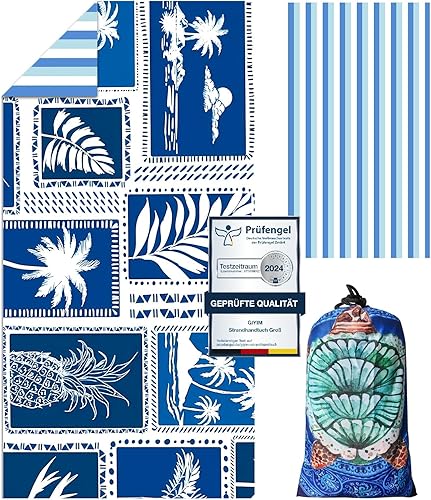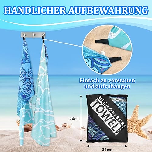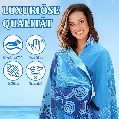 Giyim Serviette de plage XXL - 200 x 90 cm - En microfibre avec poche, absorbante et à séchage rapide - Serviette de plage douce et légère pour la plage, la natation - Bleu à carreaux