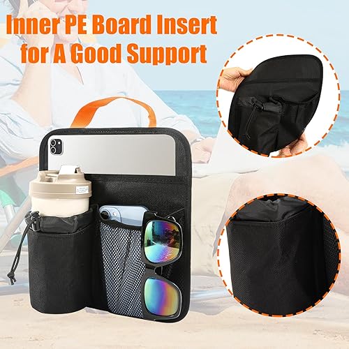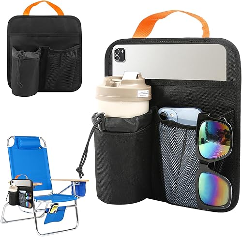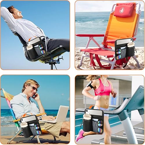 Porte-gobelet pour chaise de plage, organiseur d'accoudoir de chaise de camping, poche de chaise de camping, facile à attacher à l'accoudoir avec 2 sangles de fixation autocollantes, fixation de