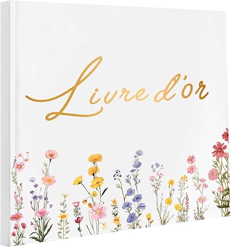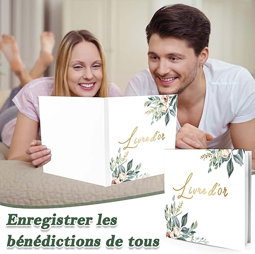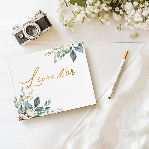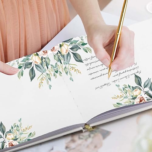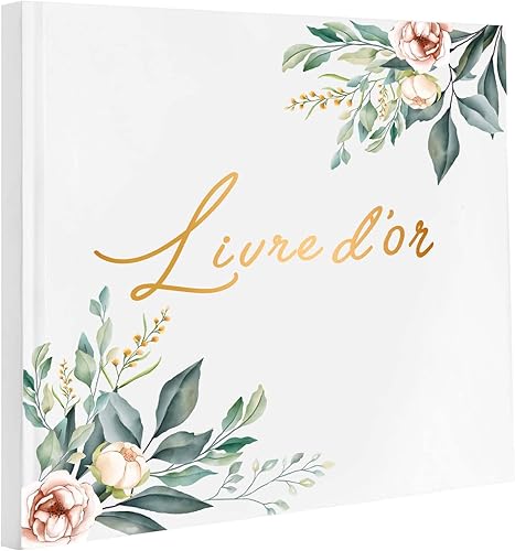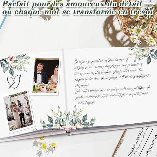 Livre d'or Mariage Vierge Élégant | 60 Pages Couverture Rigide Livre de Visiteur | Guest Book Motif de Feuille pour Anniversaire, Baptême, Cérémonie | Papier Haut de Gamme (B)