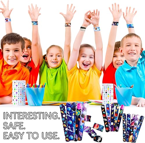 Eymobad Lot de 86 Cadeau Spatial,Anniversaire Astronaute,Décoration de Fête,avec Porte-Clés,Bracelet à Boucle,Autocollants,Paquets Cadeaux, pour anniversaire d'enfant, décoratio