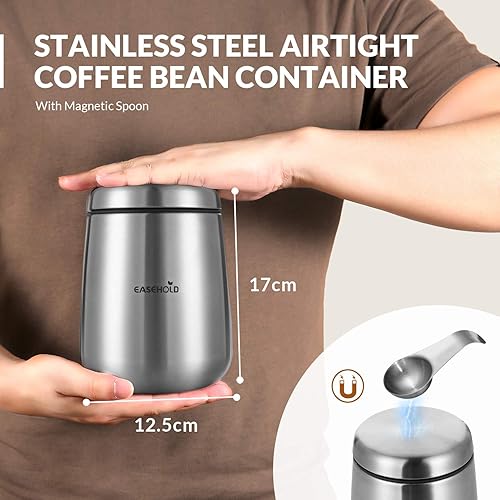 EASEHOLD Boîte à café hermétique Boîtes et Coffrets à thé et Café Alimentaire en Acier Inoxydable avec la Capacité de Stockage à 18oz -avec Une cuillère