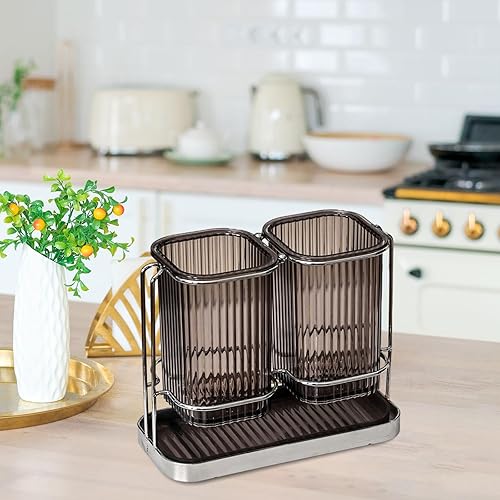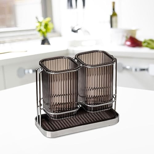 JISADER Egouttoir à Couverts,Porte-Ustensiles de Cuisine,Organisateur d'Ustensiles de Cuisine,Pot à Ustensiles Mural pour Restaurant Comptoir Couverts,19.5x8.5x16cm,sans Perçage,Facile à Sécher