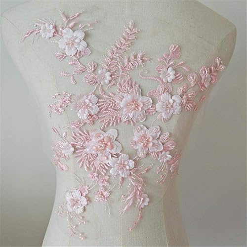 Lot de 1 broderie sur fil motif de mariage - Bordures en dentelle à perles 3D - Applique en dentelle de mariée rose