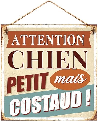 STC - Plaque Métal Attention Chien Petit mais Costaud