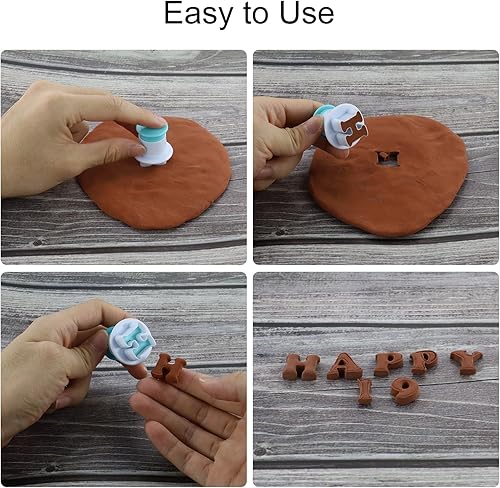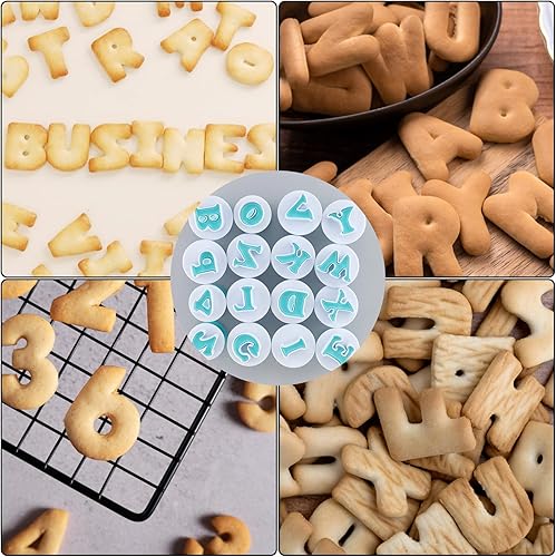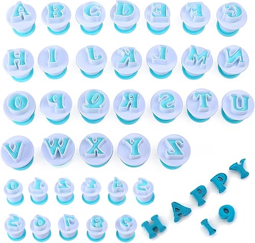 Lot de 36 emporte-pièces en forme de lettres pour fondant - Avec 1 spatule en silicone bleu ciel - Chiffres - Accessoires de pâtisserie - Alphabet - Accessoires de pâtisserie - Éjecteur