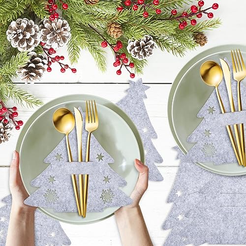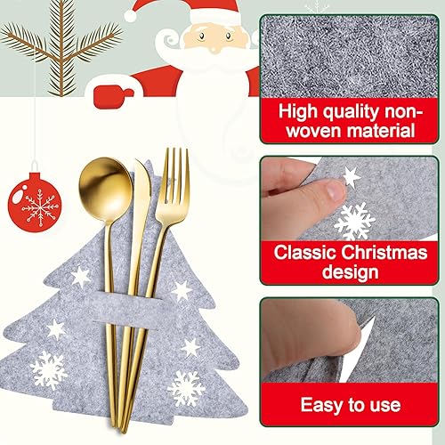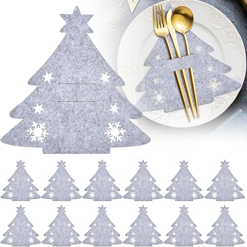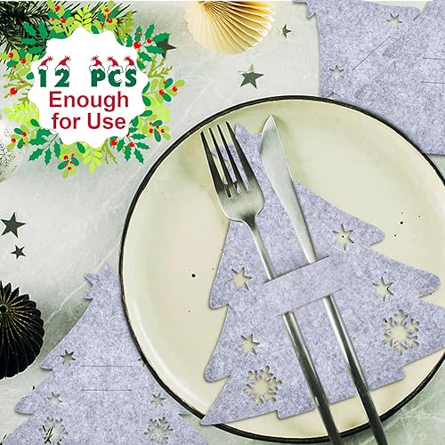Lot de 12 Porte-couverts de Noël, Porte Couverts en Feutre de Noël,Sac à Couverts Sapin de Noël,Sac à Couverts de Noël,décoration de Noël,Décoration de Table Pour Fête de Noël