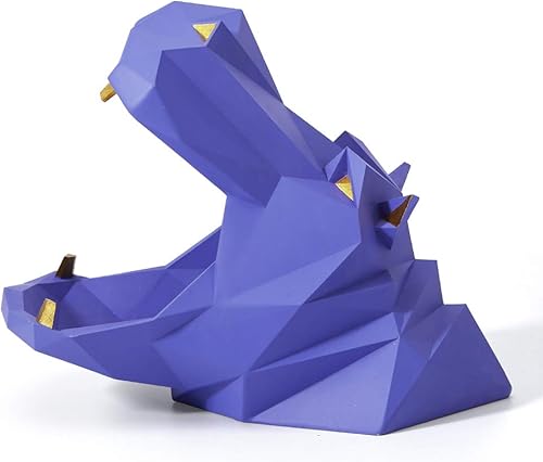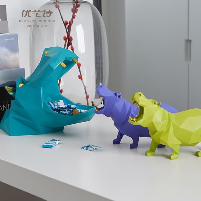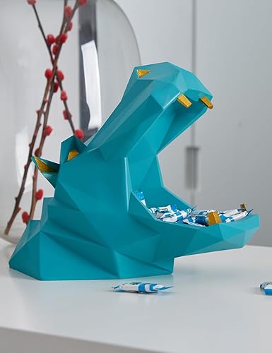 HAUCOZE Boîte à Bonbons Hippopotame Arts Statue Animal Figurine Sculpture Moderne Bleu 24cm